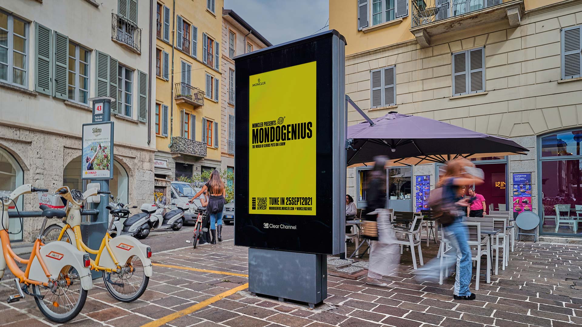 This video announced and teased the Moncler MONDOGENIUS show, playing on 22 billboards in Times Square and Shibuya, heralding concerts and collabs with artists and designers across 16 cities.